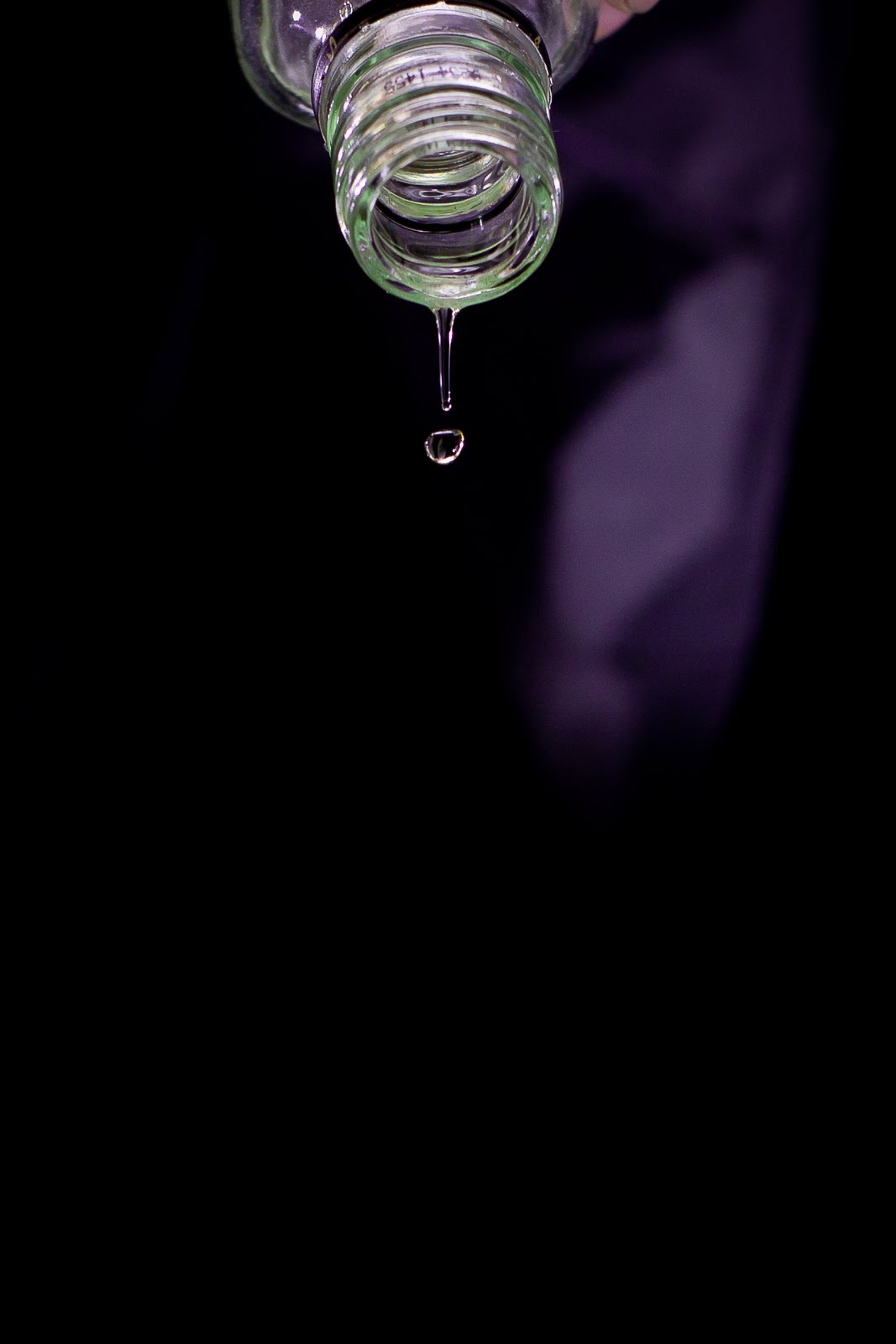 The last drop of whisky from a near death whisky bottle... It can feel it's spirit flowing out of him but can't do anything about it.